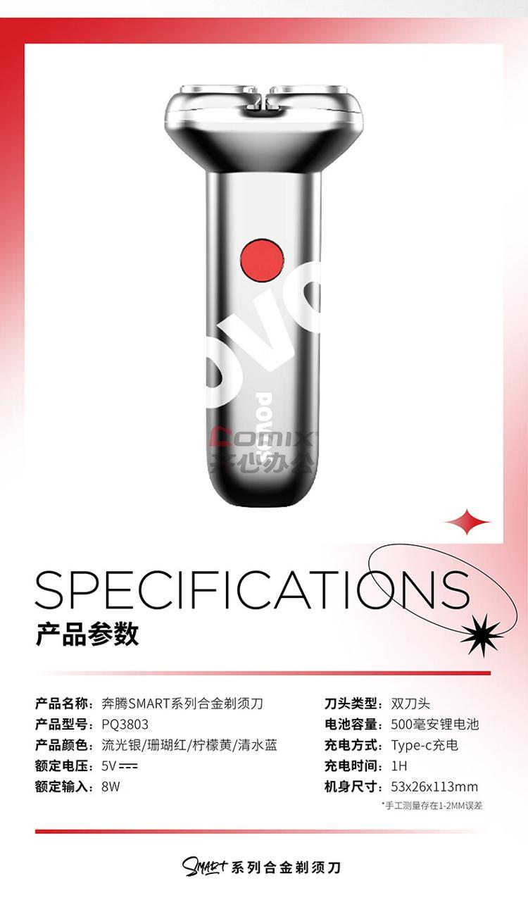 商品名称:奔腾 PQ3803 电动剃须刀 流光银 (单位:台)