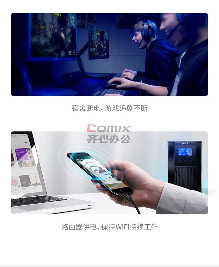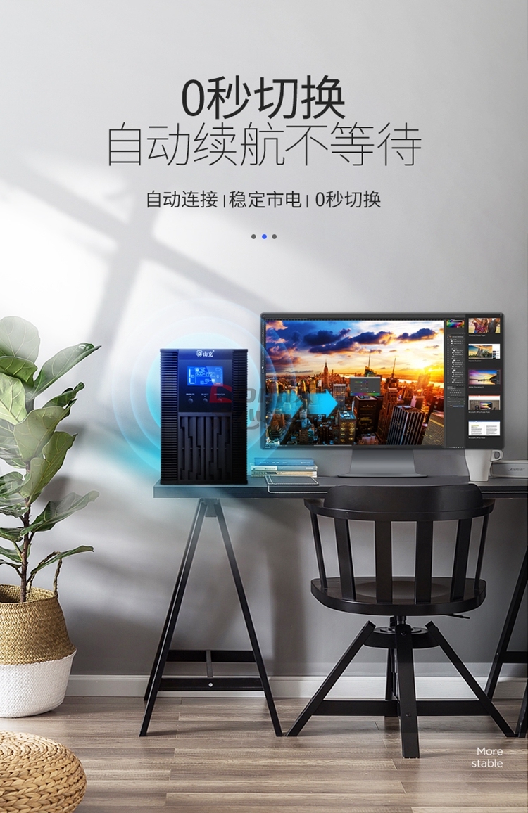 山克 SC1K 在线式UPS不间断电源1000VA800W服务器电脑后备用电源 【塔式标机 内置电池 UPS 1 台