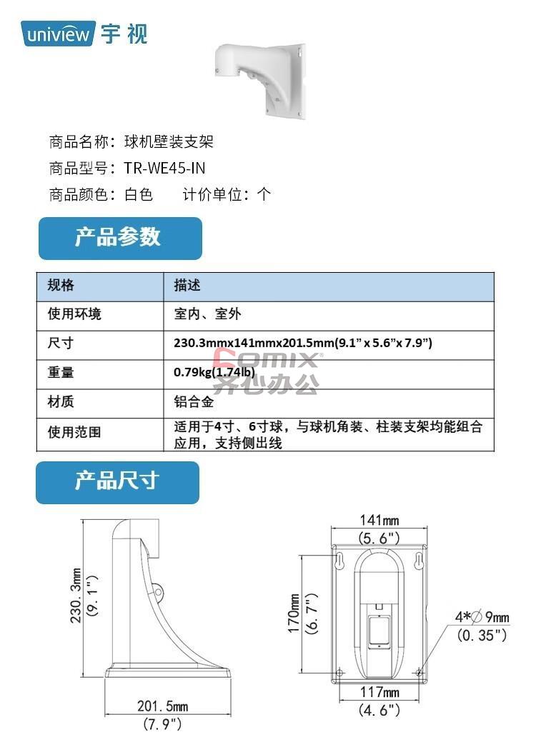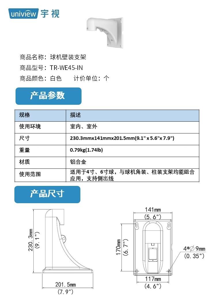 商品名称:宇视科技(UNIVIEW) TR-WE45-IN 监控支架 (计价单位:个) 白色