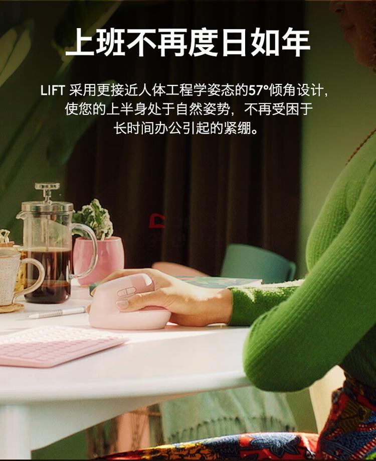 商品名称:罗技 Lift 无线双模低噪 人体工学垂直鼠标 中小手型 粉色