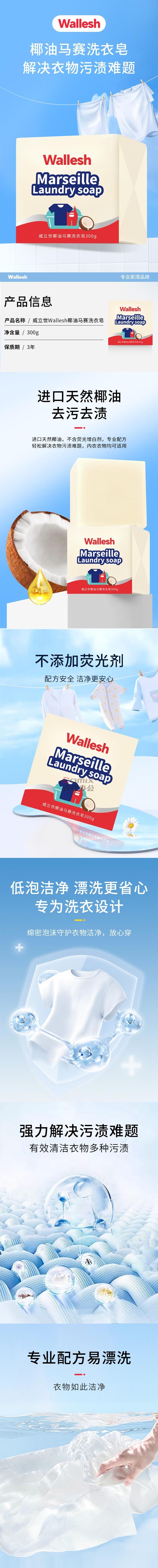 商品名称:威立世(wallesh) 椰油马赛洗衣皂300g 肥皂 (计价单位:块)