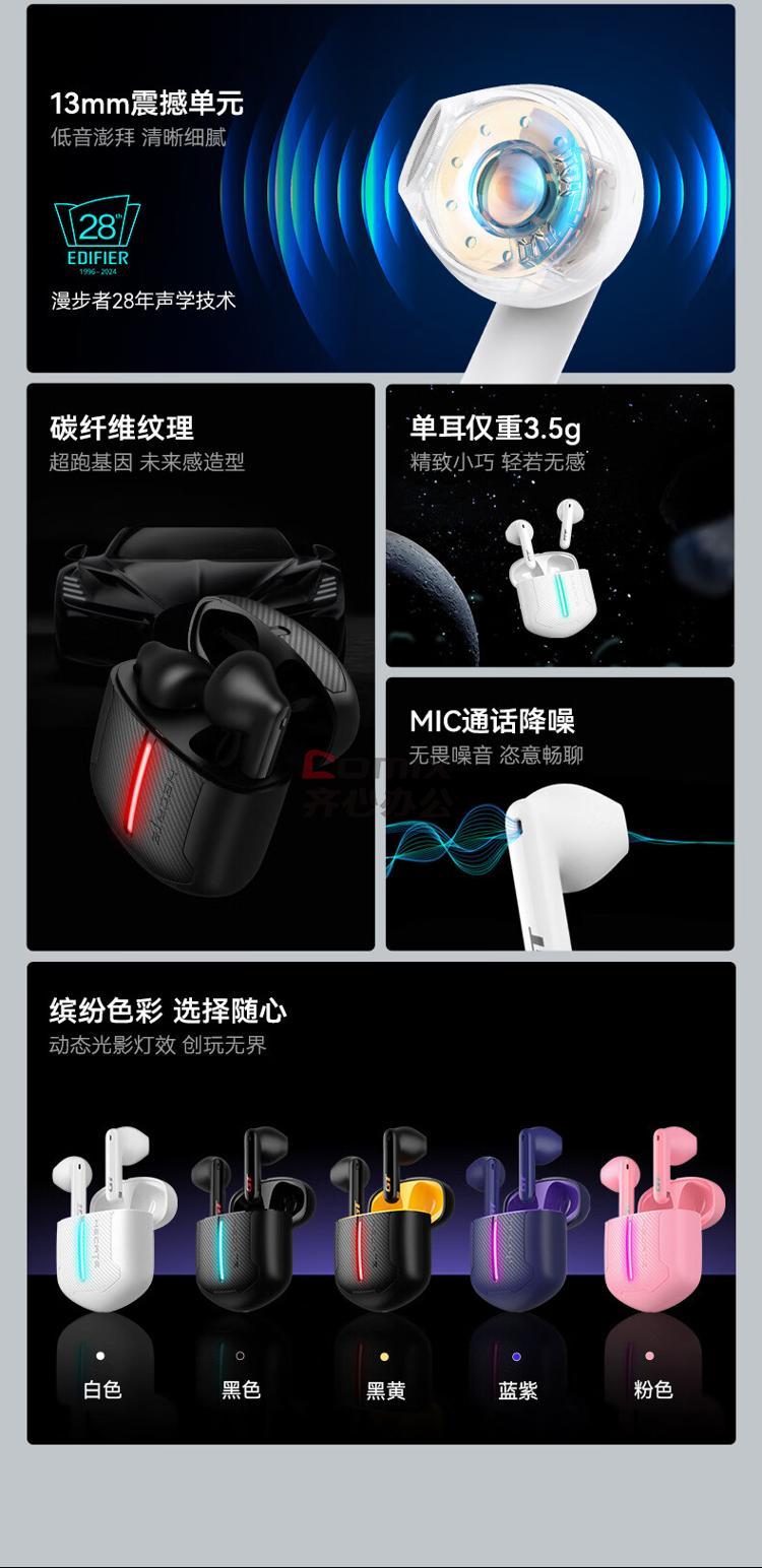 商品名称:漫步者 GT2真无线蓝牙5.3【45ms低延时】半入耳式游戏音乐耳机 白色
