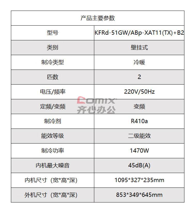 | 商品型号 | KFRd-51GW/ABp-XAT11(TX)+B2- |