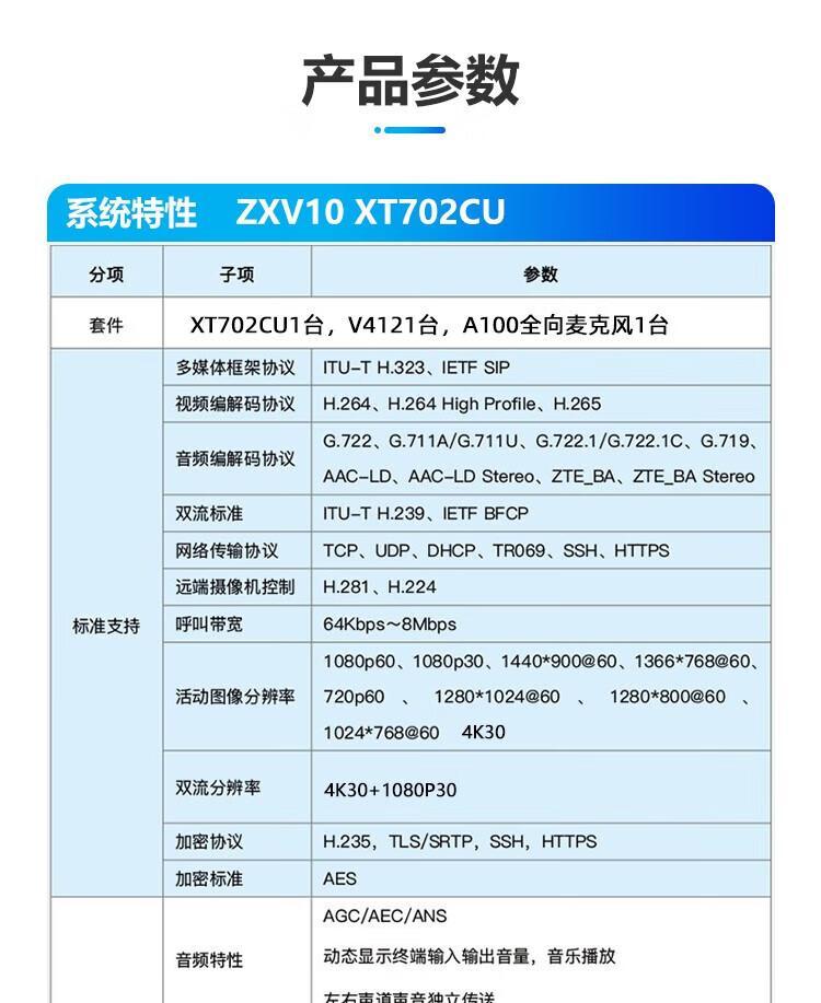 商品名称:中兴 XT702CU 4K 高清视频会议终端 1 套