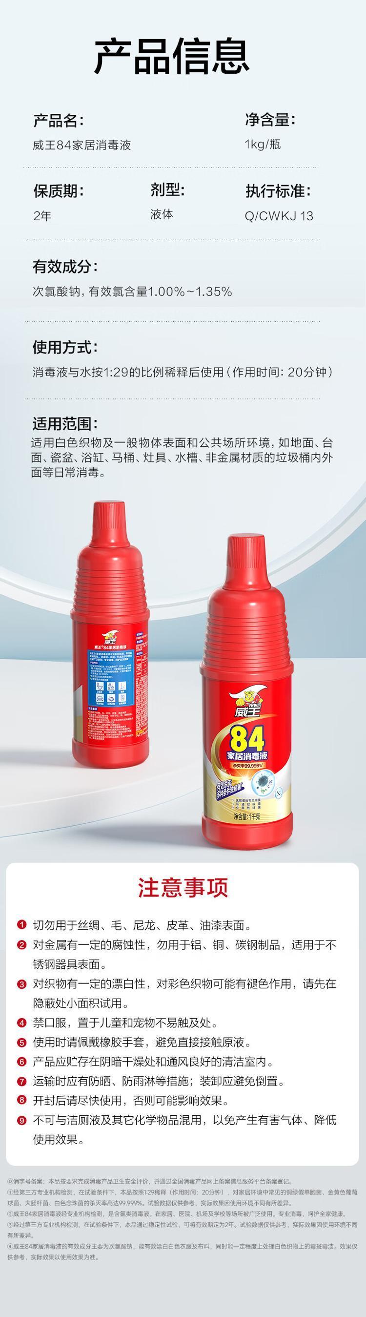 商品名称:威王(vewin) 1kg 84消毒液 (计价单位:瓶)