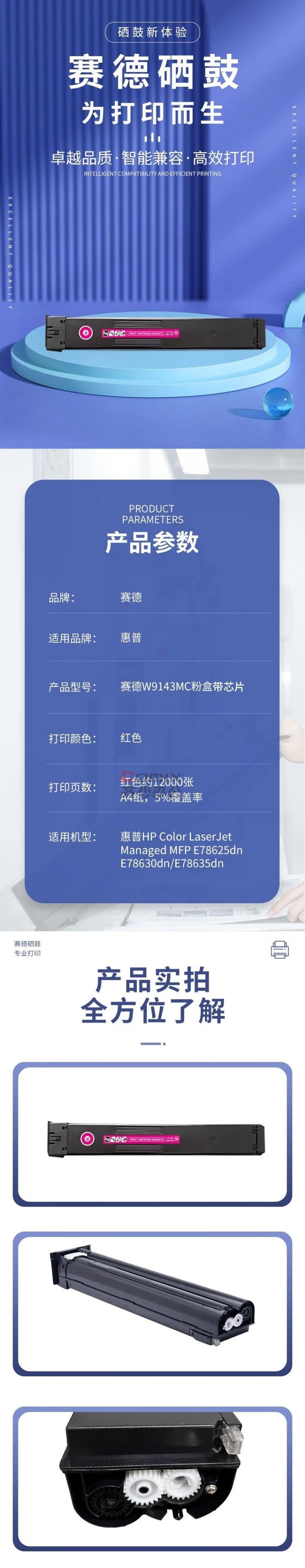 - 商品名称:赛德 W9143MC带芯片 打印量:12000页 适用惠普E78625dn/E78630dn/E78635dn 墨粉盒 (计价单位:只) 红色