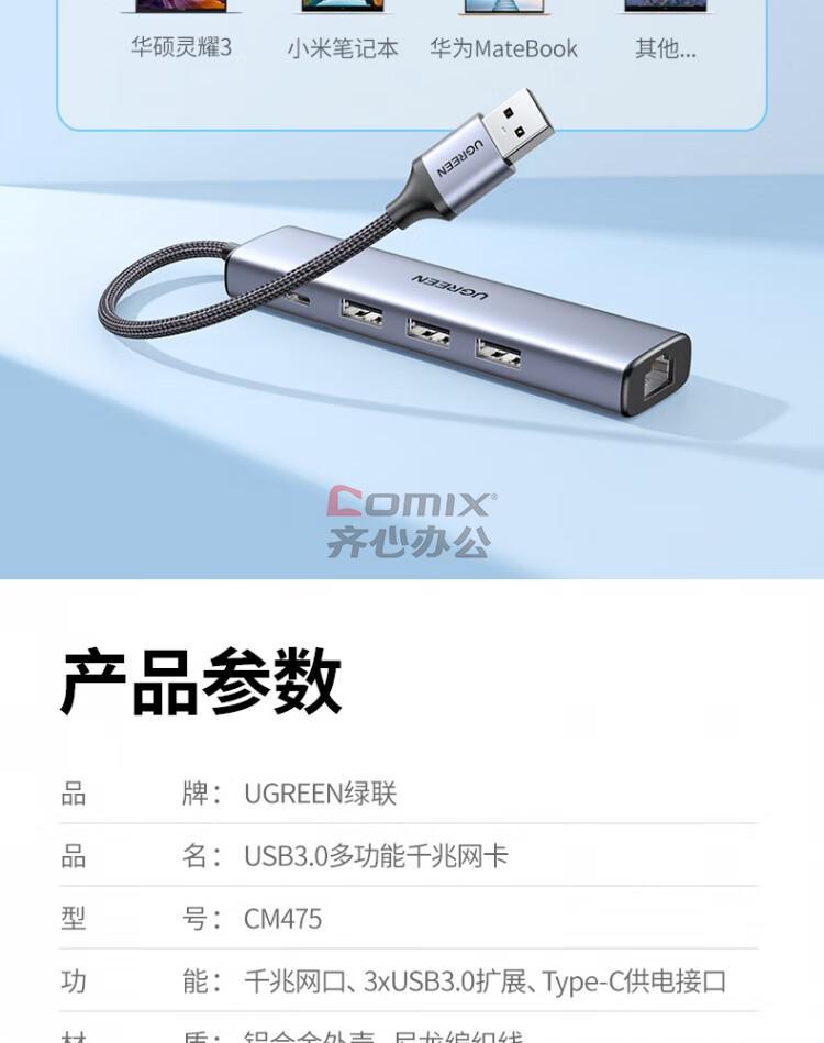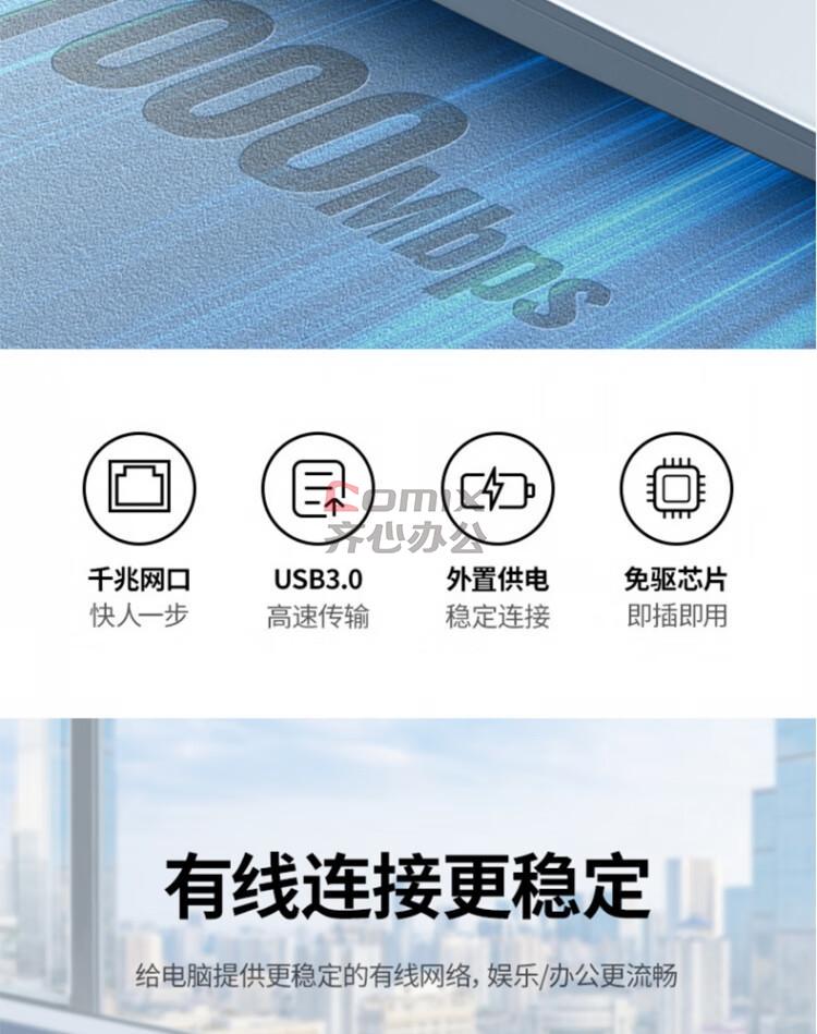 商品名称:绿联 20915 USB转千兆网口 3.0分线器 单位:个
