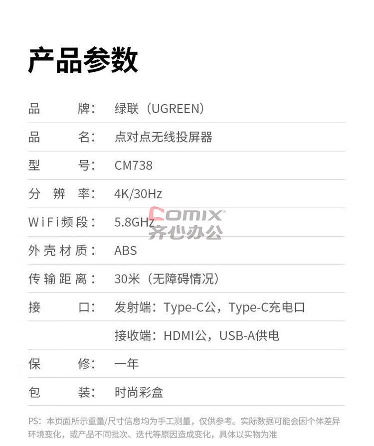 商品名称:绿联(green) 35032 CM738HDMI同屏器 点对点30米传输器 .单位:个