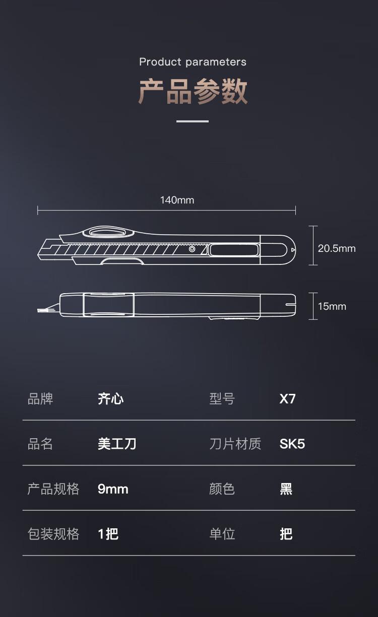 商品名称:齐心 X7 多功能美工刀 黑 单位:把