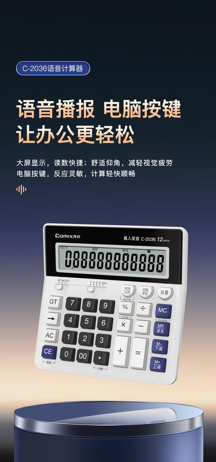 齐心 C-2036 语音计算器 165*160*45mm 白 单位:台