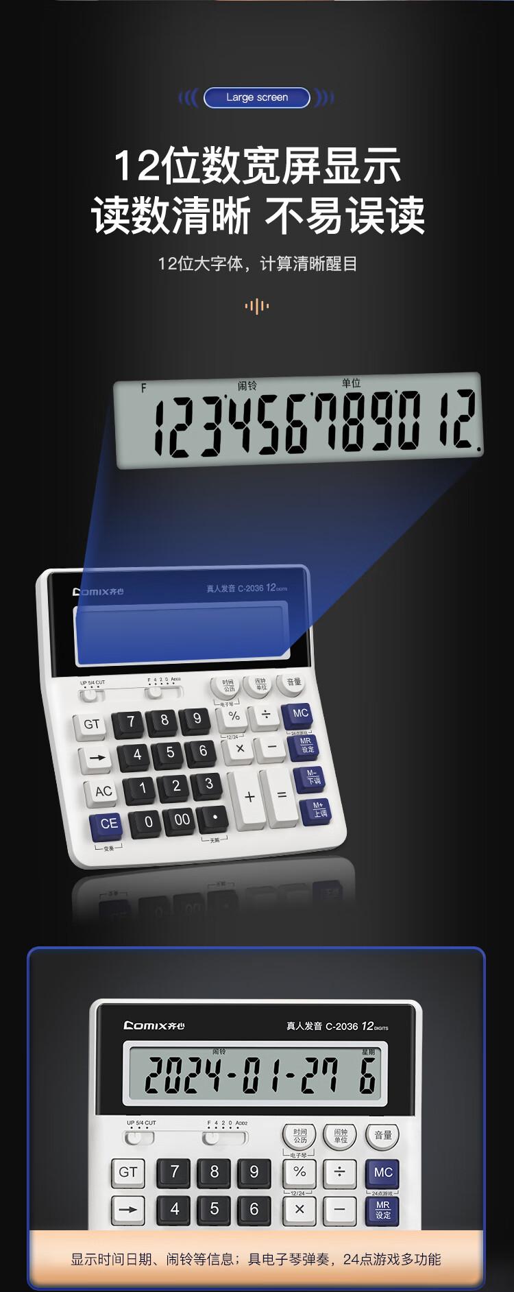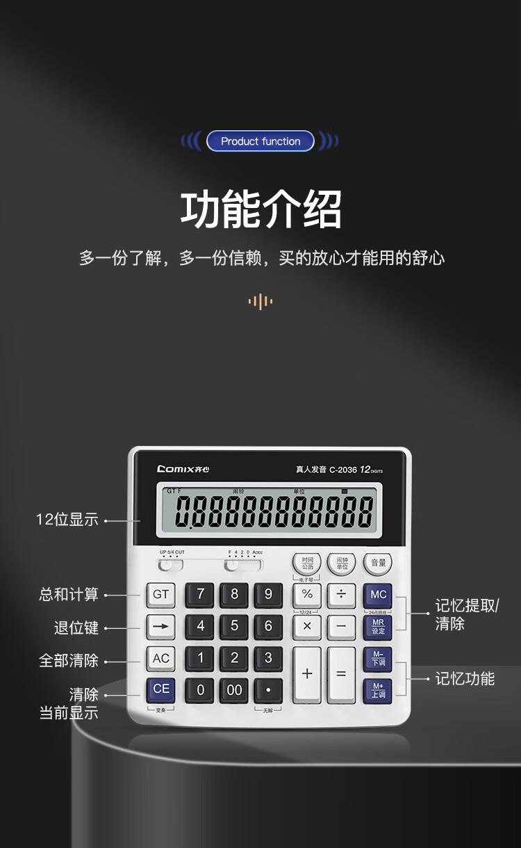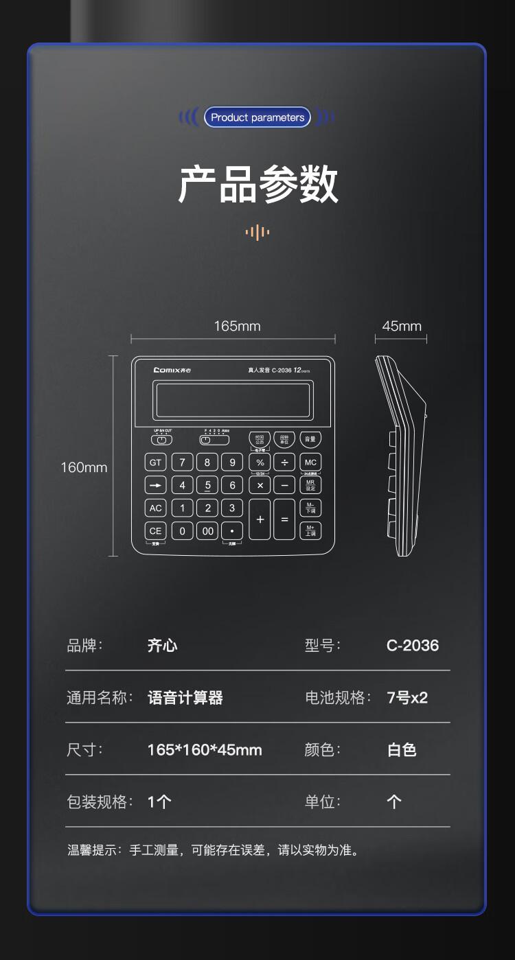 商品名称:齐心 C-2036 语音计算器 165*160*45mm 白 单位:台