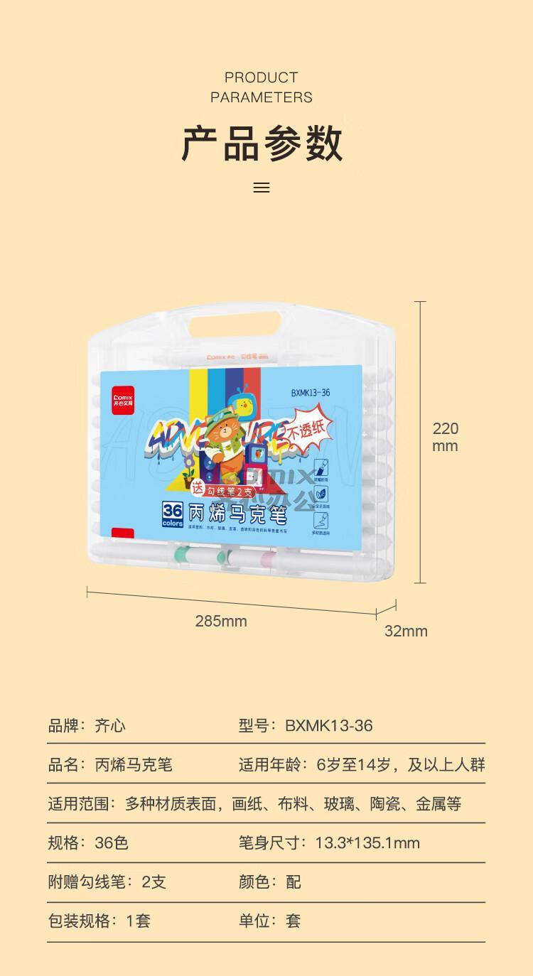 商品名称:齐心 BXMK13-36 丙烯马克笔 36色 配 单位:套