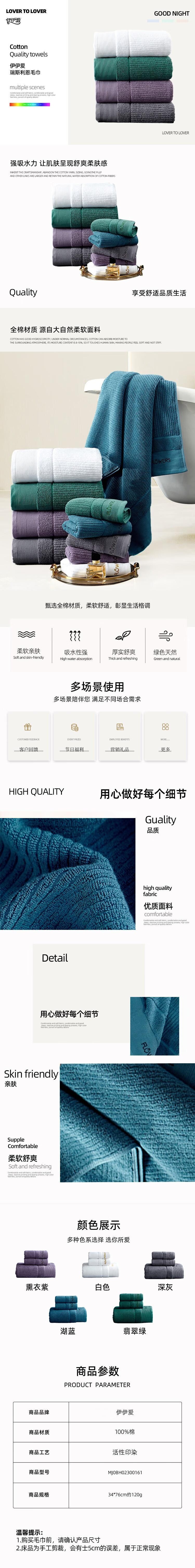 | 商品型号 | MJ0BH02300161 34*76cm 瑞斯利恩毛巾 |