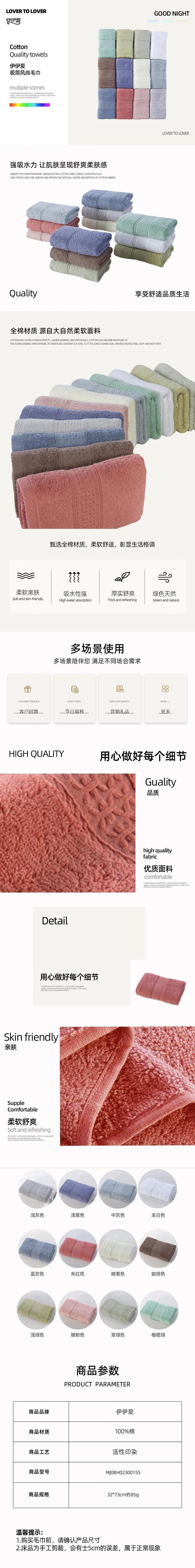 | 商品型号 | MJ0BH02300155 32*73cm 极简风尚毛巾 |