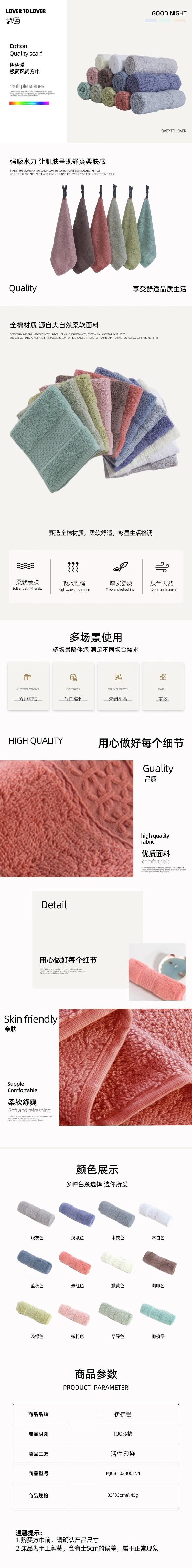 伊伊爱 MJ0BH02300154 33*33cm 极简风尚方巾 毛巾 (计价单位:条) 橄榄绿