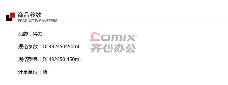 商品名称:得力 DL492450 450mL 除胶剂 计价单位:瓶