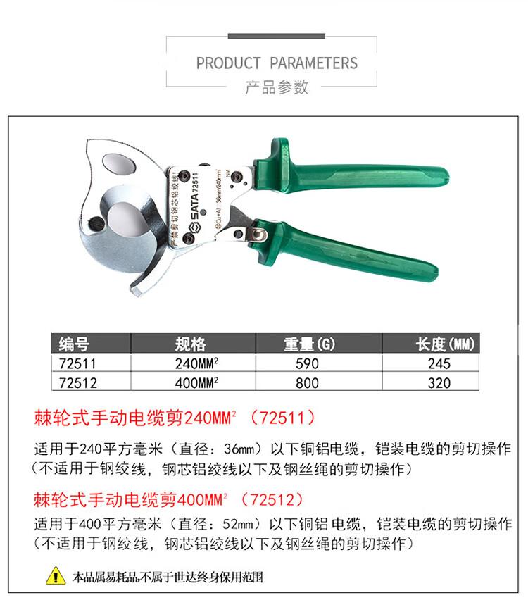 商品名称:世达 电缆剪 72512 合金钢 320mm 320 1把/把 把
