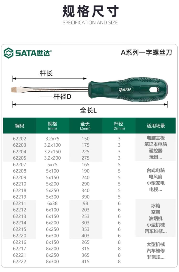 商品名称:世达 十字螺丝刀 62309 铬钒钢 5×240mm 磁吸 S2工具钢 5×150mm 1把/把 把