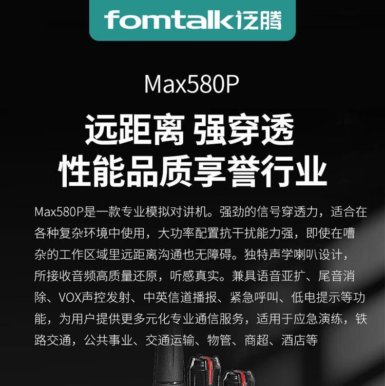 商品名称:泛腾 Max580P 对讲机 国产全自主 远距离 抗干扰 350MHz 单位:个