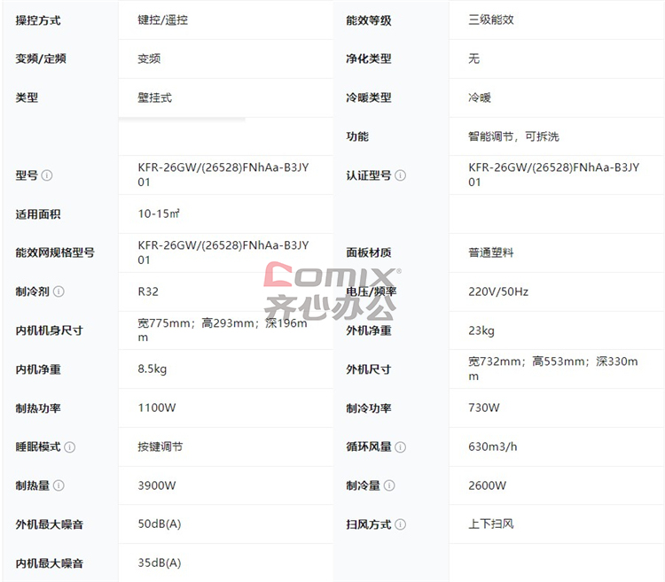 | 商品型号 | KFR-26GW/(26528)FNhAa-B3JY01 |