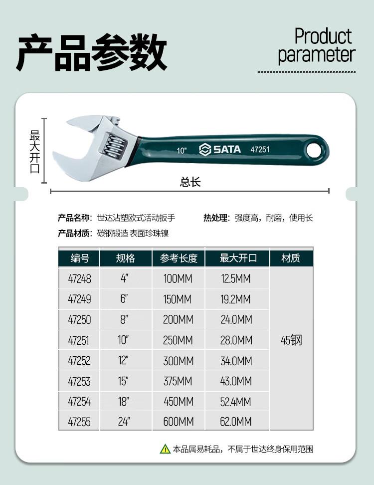 世达 (SATA) 活动扳手 47248 英制 4" 碳钢 个