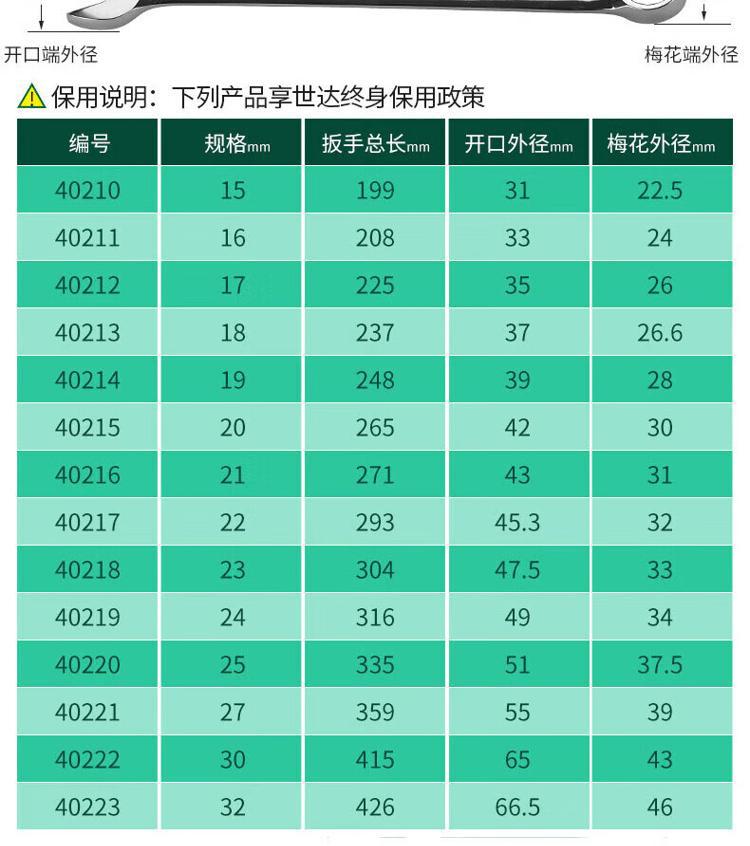 商品名称:世达(ShiDa) 40222 两用扳手 30MM 单位:件