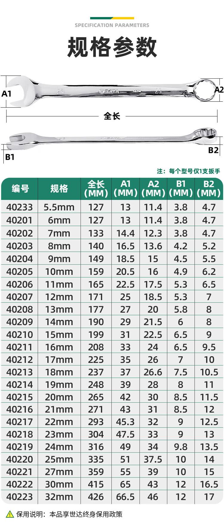 商品名称:世达(ShiDa) 40212 两用扳手 17MM 单位:个
