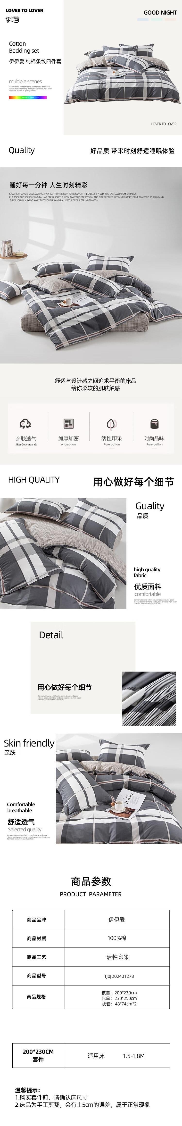 - 商品型号:TJ0JD02401278 200*230cm 纯棉条纹四件套