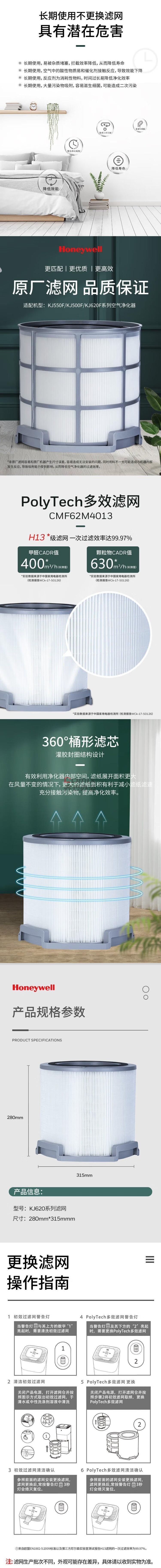- 商品名称:霍尼韦尔(HONEYWELL) CMF62M4013 适用KJ550F/KJ500F/KJ620F 复合滤芯滤网 (计价单位:个) 白色