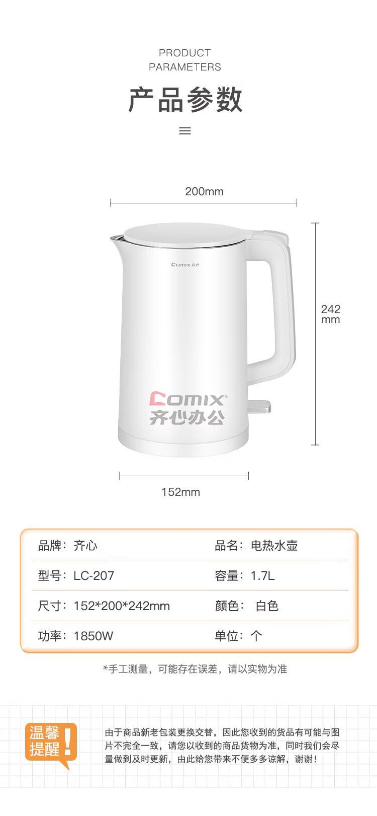 商品名称:齐心(Comix) LC-207 保温壶 1.7L 纯白 单位:个