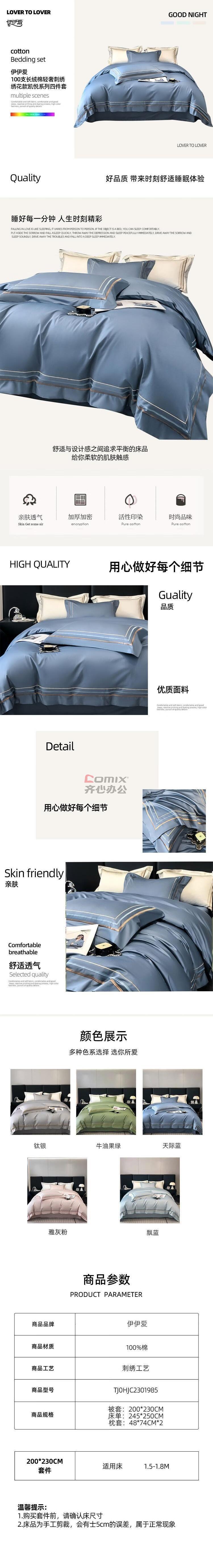 伊伊爱 TJ0HJC2301986 220*240cm 长绒棉刺绣凯月四件套100支(50S双股) 床上套件 (计价单位:套) 天际蓝