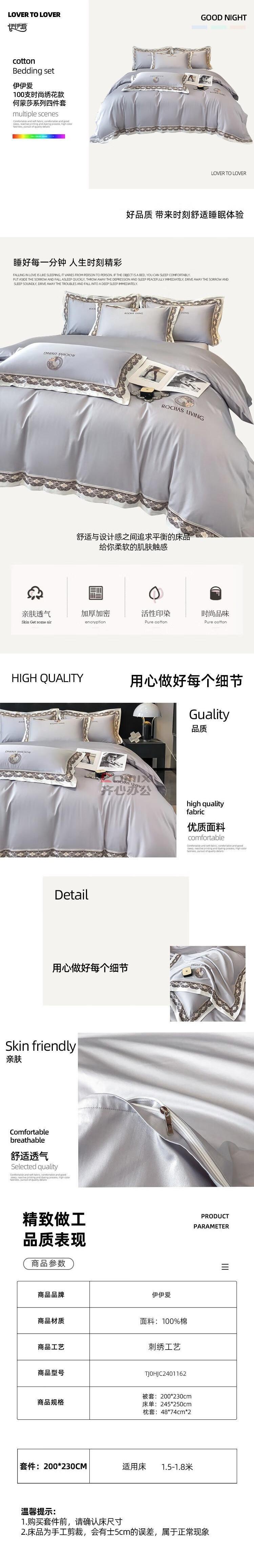 伊伊爱 TJ0HJC2401162 200*230cm 100支时尚绣花款何蒙莎系列四件套 床上套件 (计价单位:套) 何蒙莎(丁香褐)