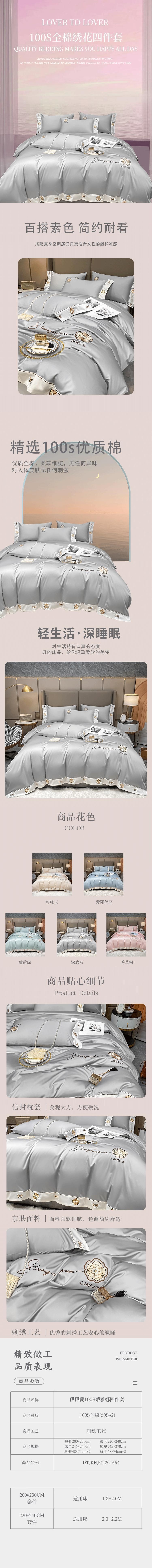 伊伊爱 DTJ0HJC2201664 /200*230cm 蒂雅娜绣花纯棉四件套 (计价单位:套) 深岩灰