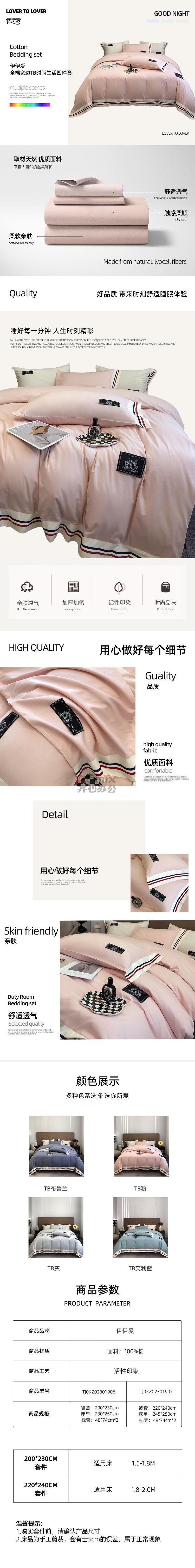 - 商品名称:伊伊爱 TJ0KZ02301906 200*230cm 全棉宽边TB时尚生活简约粉四件套 (计价单位:套) TB粉