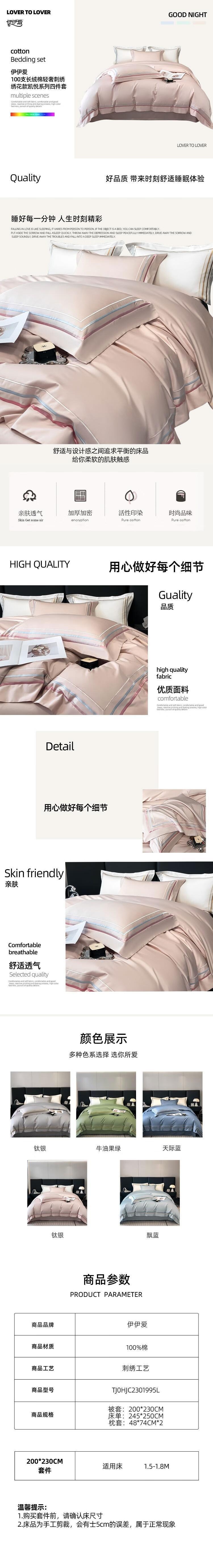 - 商品名称:伊伊爱 TJ0HJC2301995L /200*230cm 凯悦100支四件套 (计价单位:套) 雅灰粉