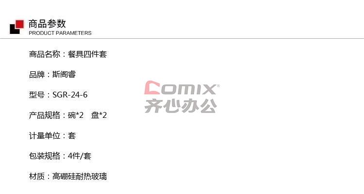 商品名称:斯阁睿 餐具四件套 SGR-24-6 碗*2 盘*2 套 4件/套 高硼硅耐热玻璃 单位:套