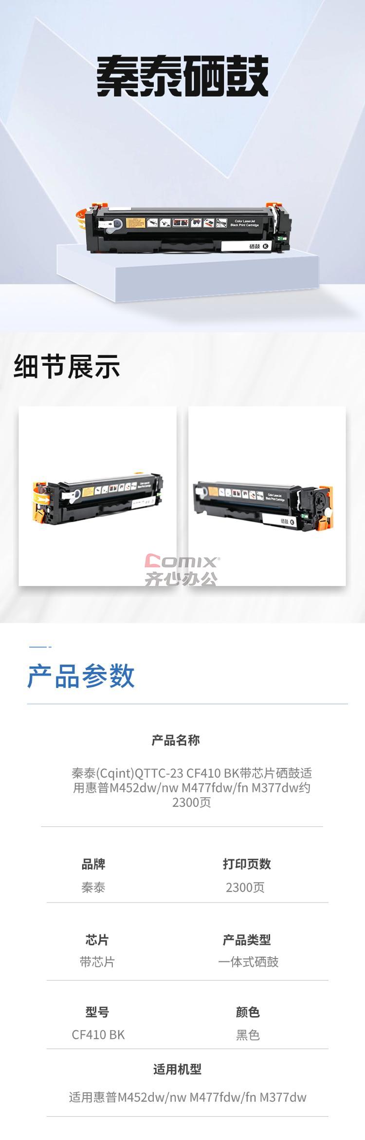 秦泰(Cqint) QTTC-23 CF410 BK带芯片硒鼓适用惠普M452dw/nw M477fdw/fn M377dw约2300页 硒鼓 (计价单位:只) 黑色