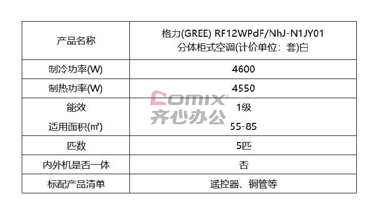 - 商品名称:格力 柜式空调 RF12WPdF/NhJ-N1JY01 变频1级冷暖5匹柜式空调 单位:台