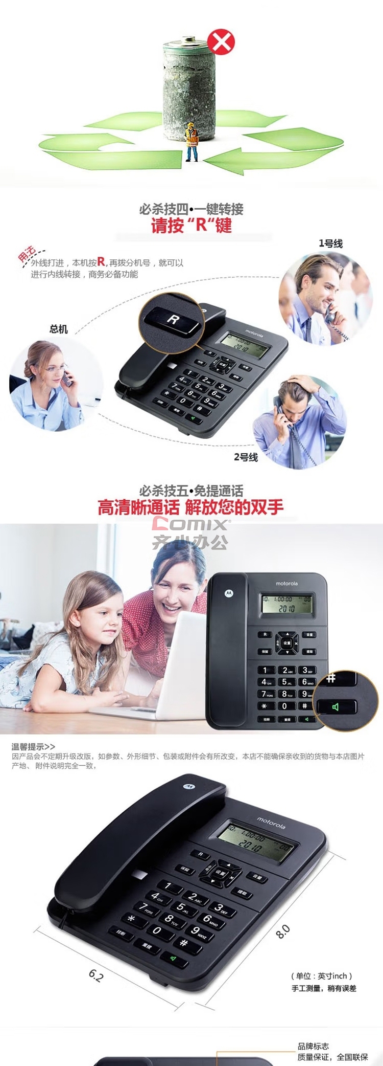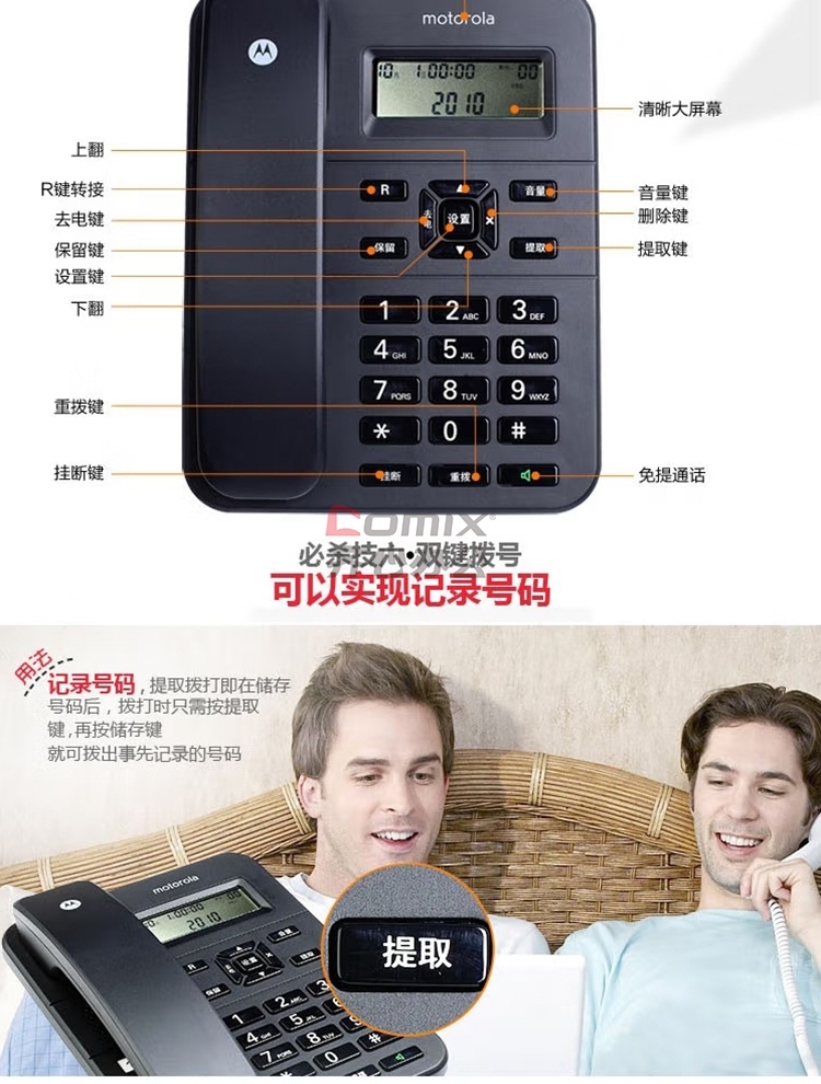 商品名称:摩托罗拉 CT202C 免电池电话机 单位:台
