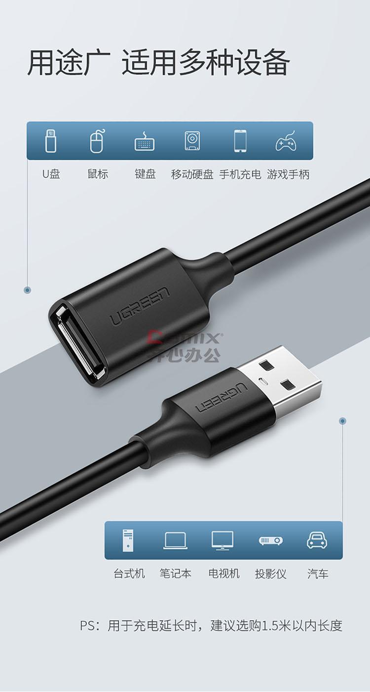 绿联 10315 1.5米 圆线 公母电脑连接线/数据线/USB延长线