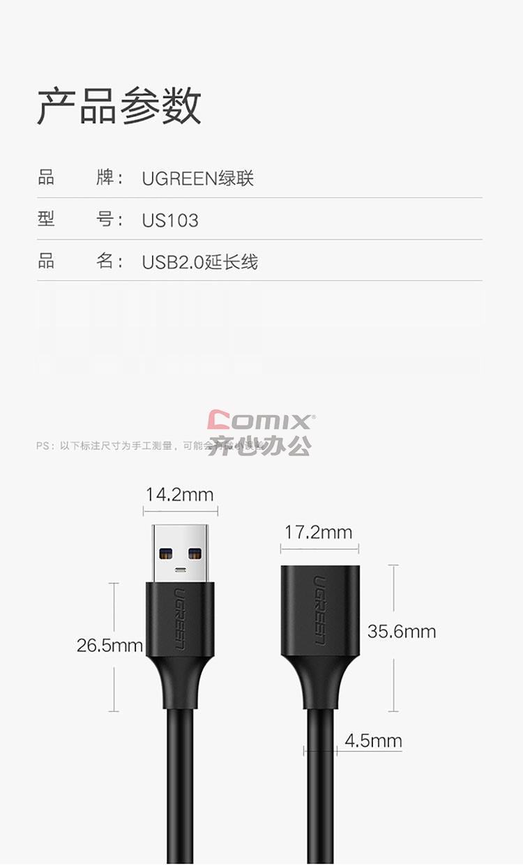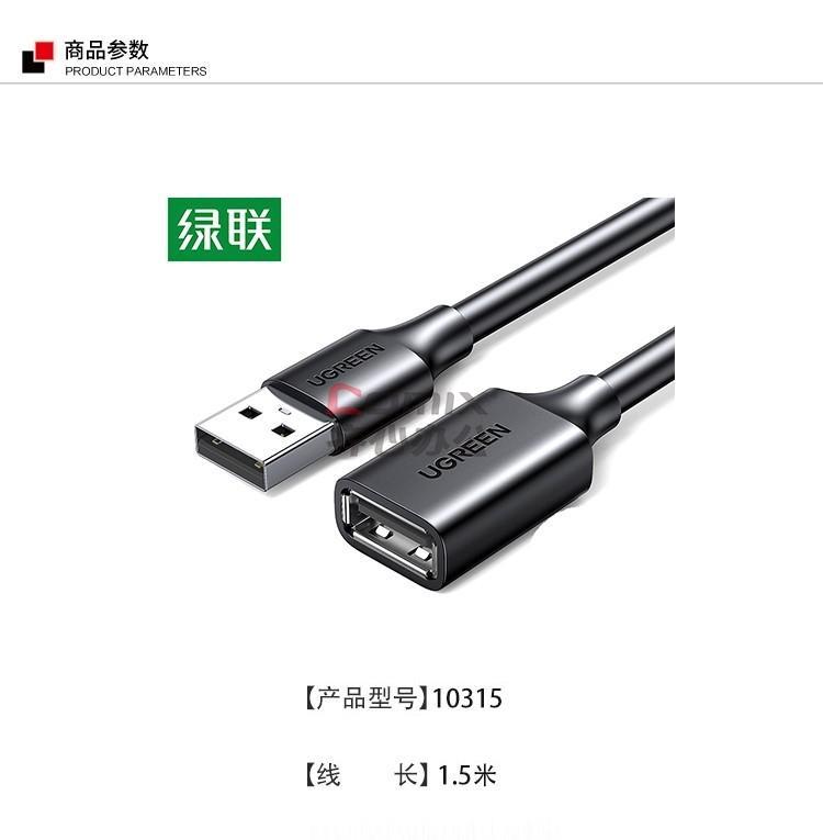 商品名称:绿联 10315 1.5米 圆线 公母电脑连接线/数据线/USB延长线