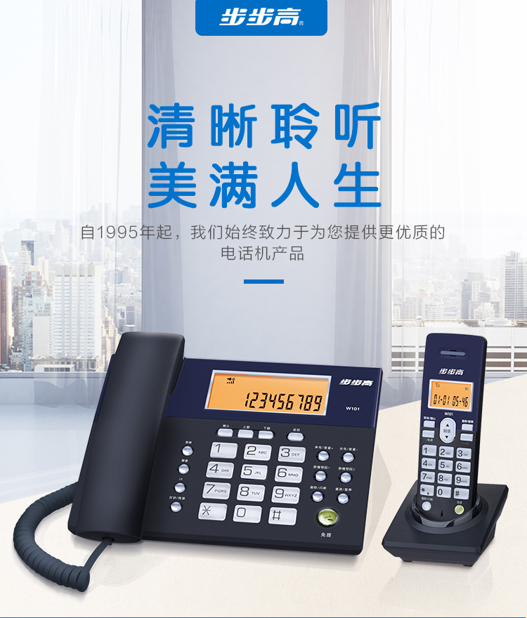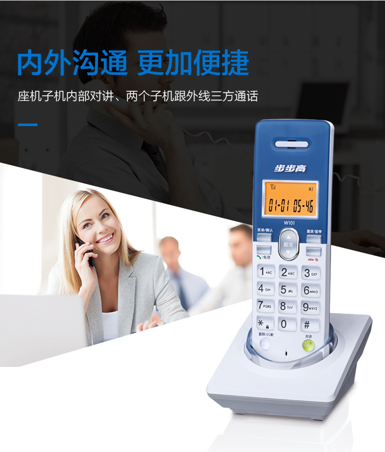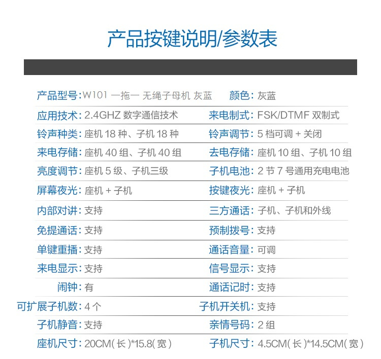商品名称:步步高 HWDCD007(101)TSD 无绳电话机 子母机一拖一 W101 灰蓝(单位:台)