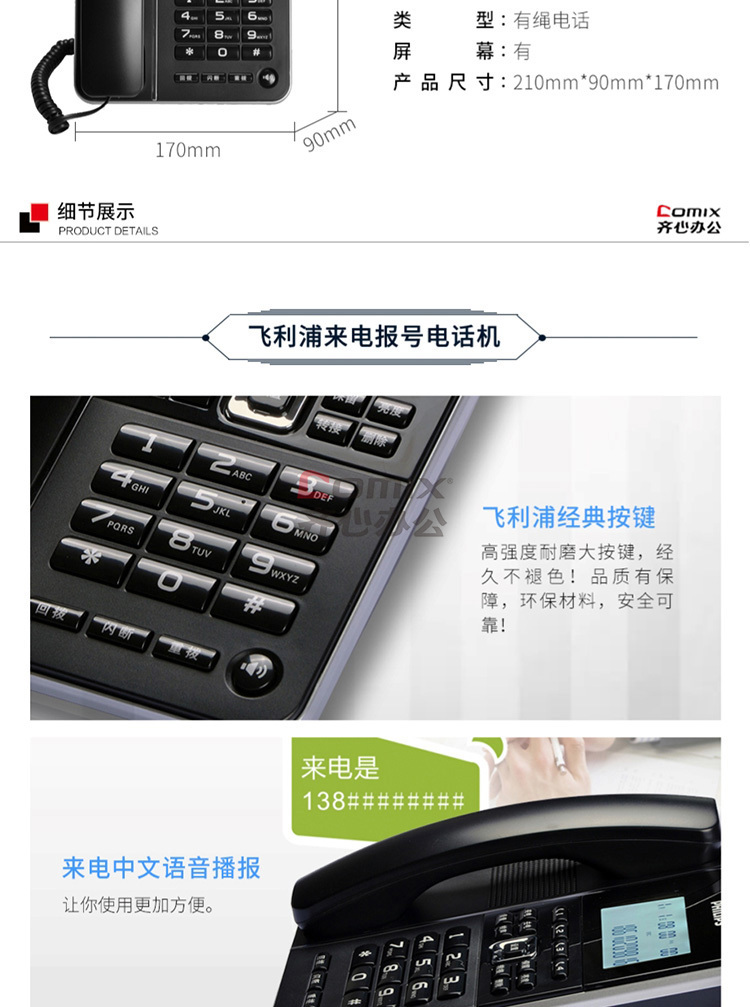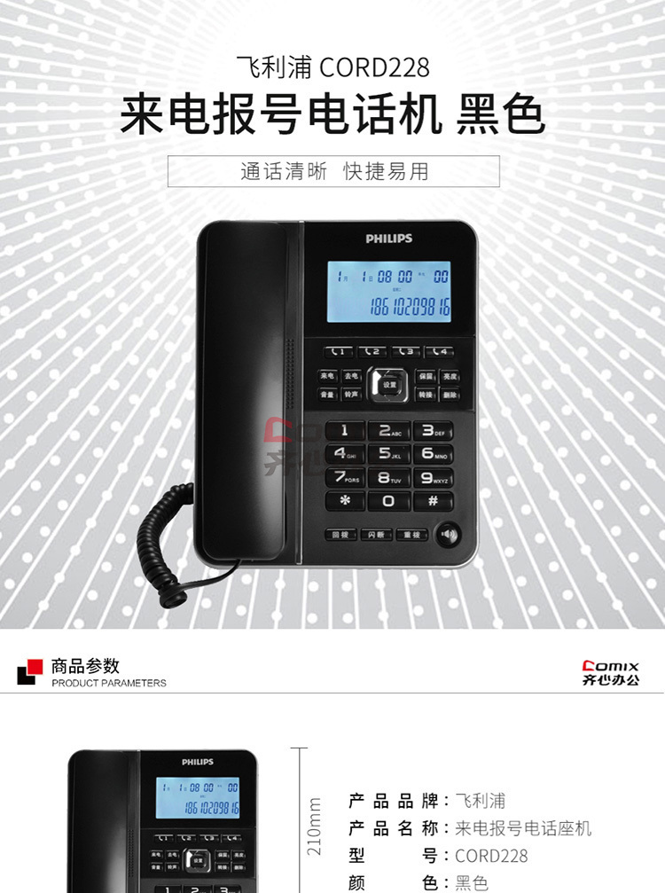 商品名称:飞利浦(PHILIPS) CORD228 来电报号电话机 黑色 单位:台