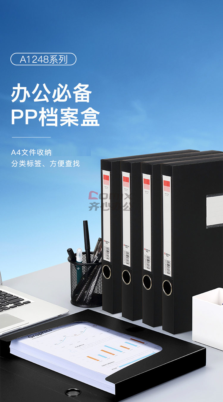 齐心 A1248 PP档案盒 A4 35mm 黑色 单位:个