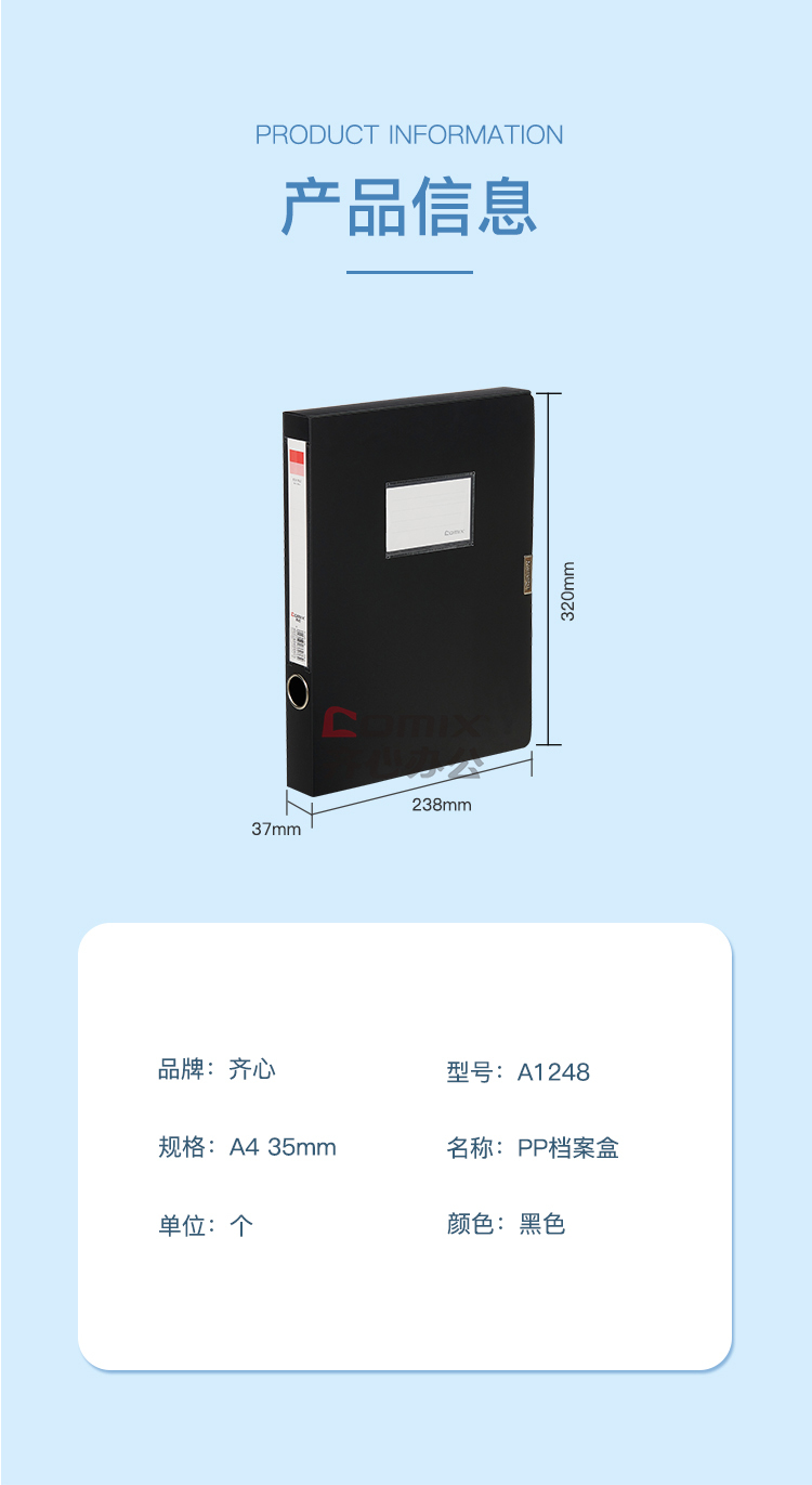 商品名称:齐心 A1248 PP档案盒 A4 35mm 黑色 单位:个