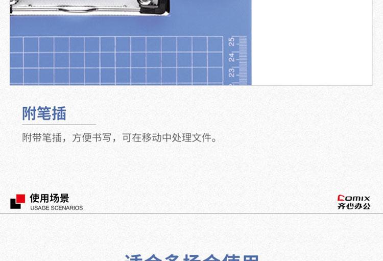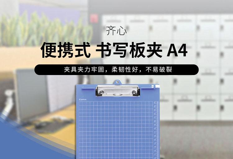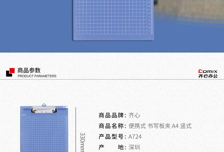 商品名称:齐心 A724 便携式书写板夹 竖式 A4 蓝色 单位:个