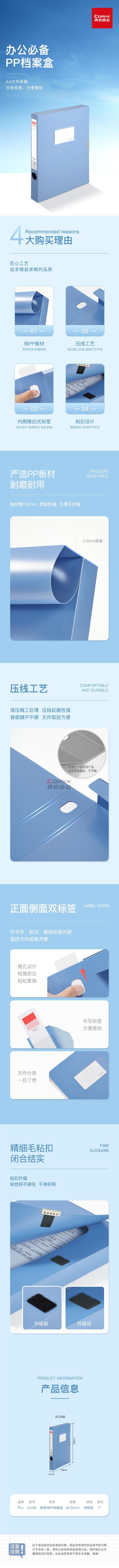 商品名称:齐心 A1248 PP档案盒 A4 35mm 明丽蓝 单位:个