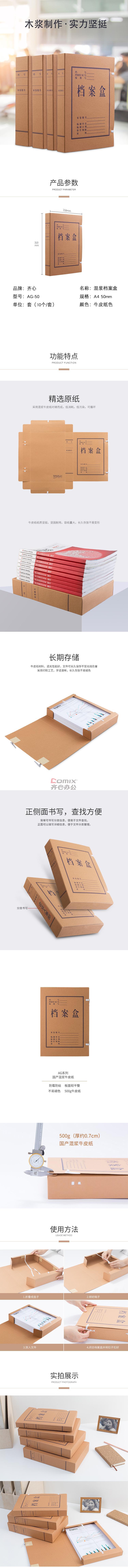 商品名称:齐心 AG-50 本色国产混浆档案盒 A4 50mm 牛皮纸色 10个/套 单位:套