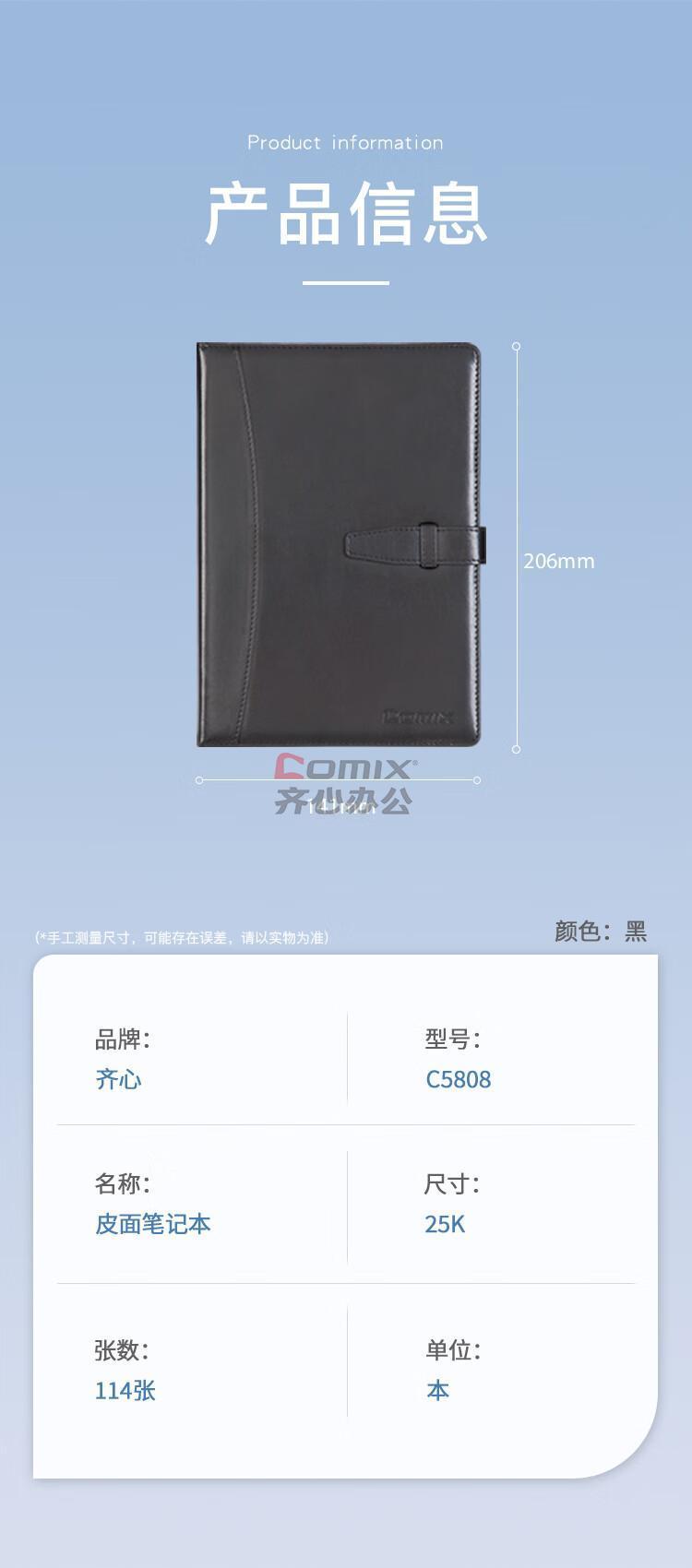 商品名称:齐心 C5808 皮面笔记本 25K 114张 黑色 单位:本