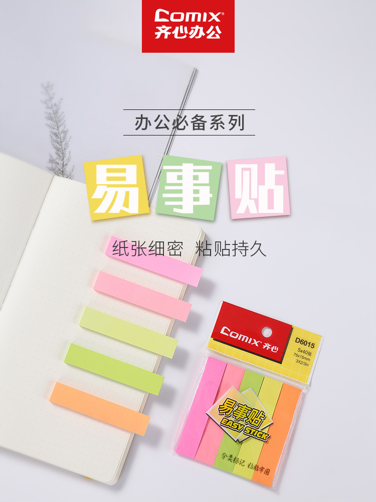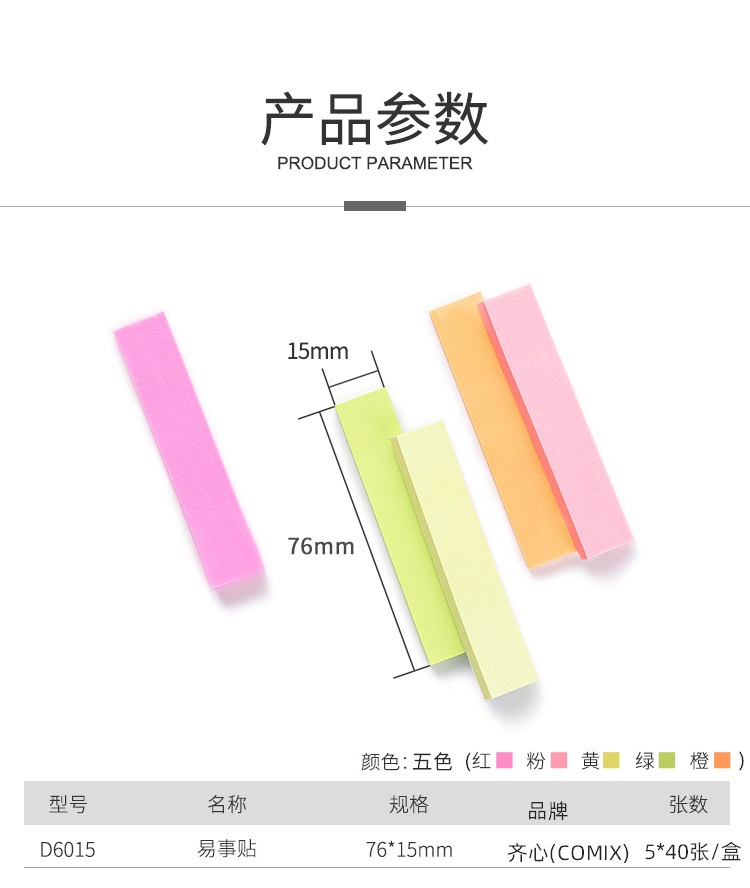 商品名称:齐心 D6015 五色指示标签便笺条袋装 76*15mm 配色 200张/本 单位:本